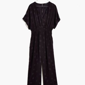 EUC Madewell Black Polka Dot Wrap Front Smock Waist Jumpsuit - Small