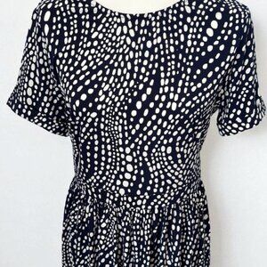EUC Maggy London Fit and Flare Dress | Size 8 | Navy Dots Pattern