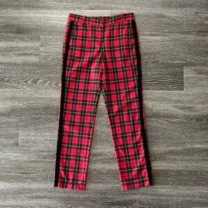 EUC Maje Red Pantya Velvet Piped Plaid Pants Tartan Cropped Check Slim Trouser