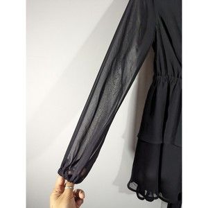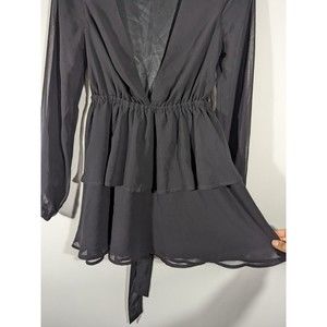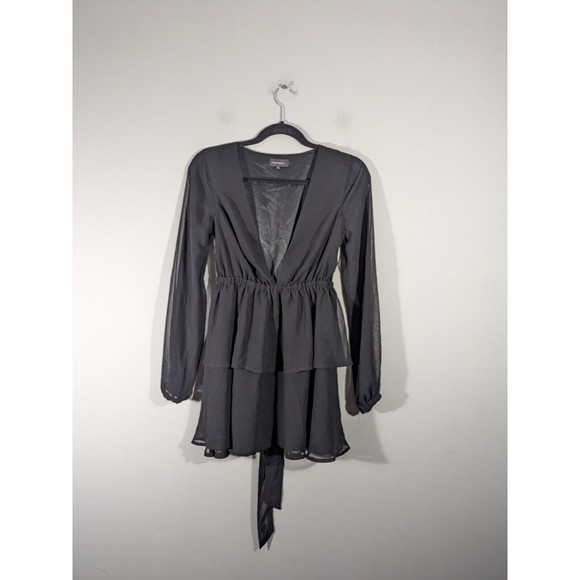 EUC Majorelle Black Plunge Neck Long Sleeve Mini A-Line Dress Size XS