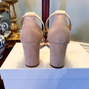 EUC Manolo Blahnik Lauratomod Velukid Block Heel Sandals Tan Rusty Red 38 or 8
