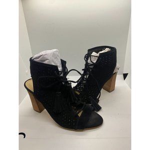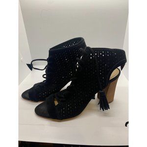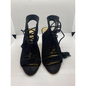 EUC Marc Fischer Black Block heel and toe Suede Lace Up Heels Sz8M