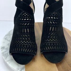 EUC Marc Fisher Geela Leather Open Toe Casual Strappy Chunky Black Womens Heel 7