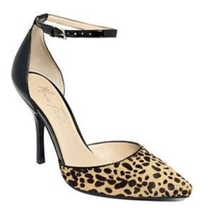 EUC Marc Fisher KILEYLEE Women's Ankle Strap Animal Print Black + Brown Pony