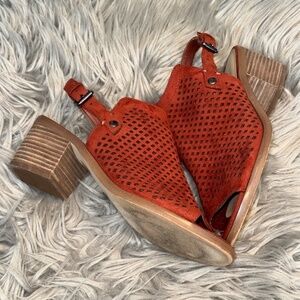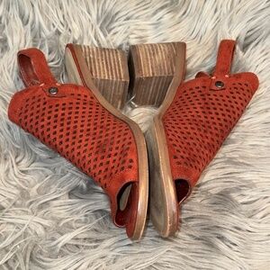 EUC Marc Fisher Sasha Faux Suede Eyelet Sandal Block Heel Open Toe Size 8.5