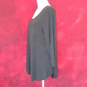 Features - Scoop neck, 3/4 sleeves, hem slightly longer in back