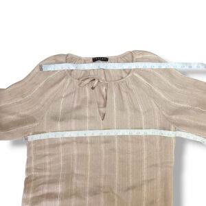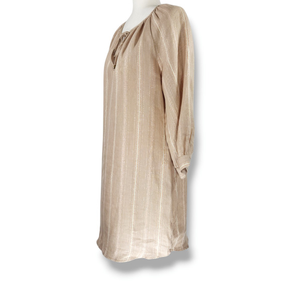 EUC Maven West Made in USA Long Sleeve Linen Stripe Dress Sz. S [2-4] Beige Gold