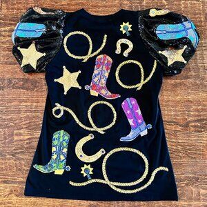 EUC, Medium, Queen of Sparkles, Black Sequin Cowgirl Icon Tunic Dress