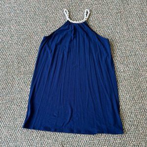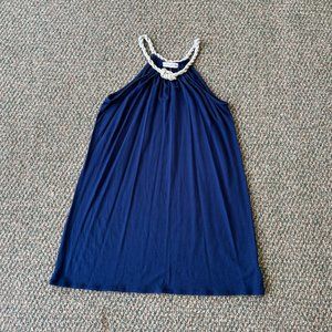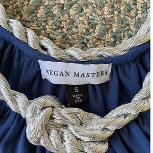 EUC Megan Masters blue dress with silver rope neckline, size Small