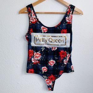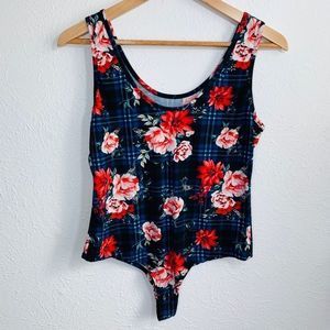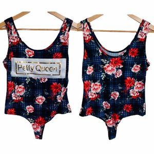 Meli + Eve Petty Queen Thong Bodysuit. Blue Plaid Floral. Very soft.