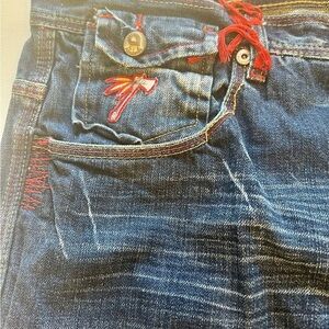 EUC Mens Akademiks Native Warriors Indian Dark Blue Jeans 38x32🐎🐎 (D3)