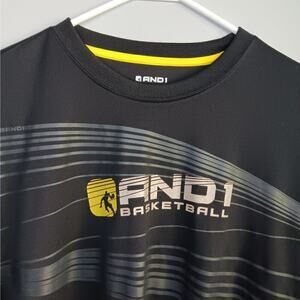 EUC Men's And1 Black Short Sleeved Shirt Basketball Theme Size L