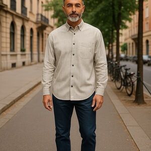 EUC Men’s Levi Strauss XL Blue/Tan Long Sleeve Shirt 100% Cotton Stripes
