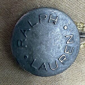 * STYLE- 5-pocket design, traditional straight leg, chino pant. "The Prospect Straight" Collection by Rolo Ralph Lauren (gold label). Super soft, suede-like khaki. Large beltloops. Large, cow's leather back waistband patch.