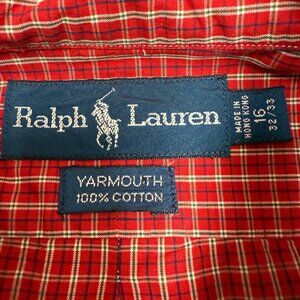 EUC Men's RALPH LAUREN Yarmouth Button Down Red Plaid Shirt | Size 16 (32/33)