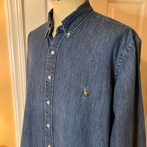 EUC Men's Ralph Lauren Navy Blue Chambray Denim Button Down Shirt Size 1XB
