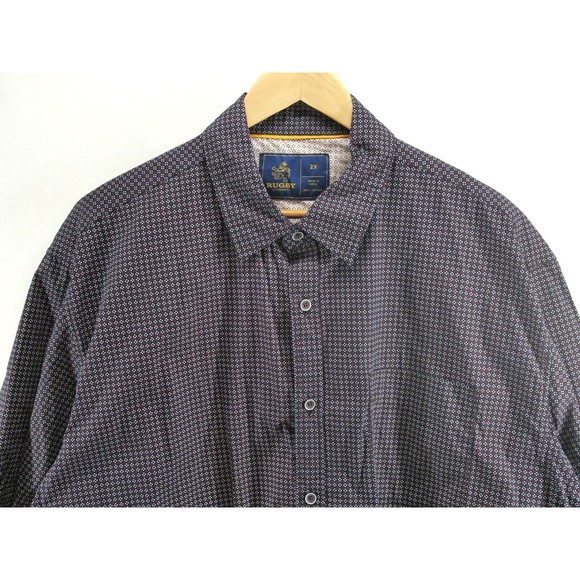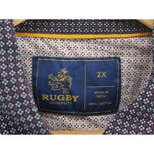 EUC Men’s Rugby University Short Sleeve Button Up 2X 100% Cotton Burgundy‎ Gray