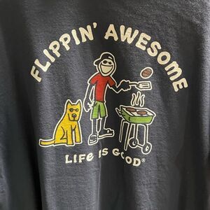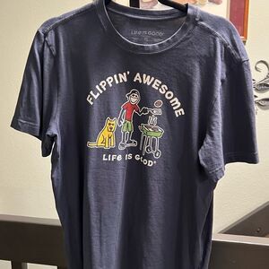 EUC Men’s Small Life is Good Navy Graphic T-Shirt” Flippin Awesome” #082