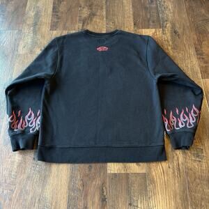 EUC Men's Vans Thrasher Off The Wall Black Flame Sweatshirt | Embroidered MEDIUM