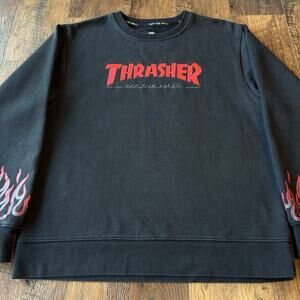 EUC Men's Vans Thrasher Off The Wall Black Flame Sweatshirt | Embroidered MEDIUM