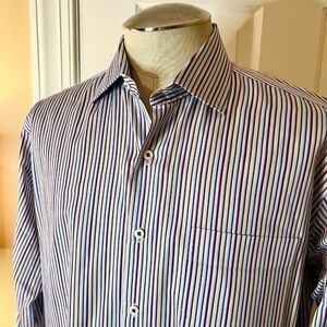 EUC Men's Peter Millar Colorful Striped Dress Shirt Size LARGE