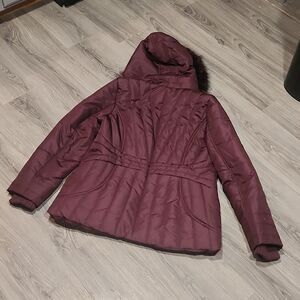 EUC Merlot Faux Fur Puffer Coat, no flaws at all, like new condition. Pit to pit is 21" and 27" long.