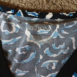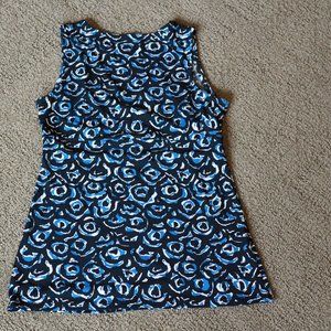 EUC Merona Blue Black Rose V Neck Blouse XS