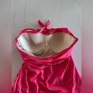 EUC Merona One-Piece, Halter Neck, Faux Wrap Swim Suit with underwire cups.