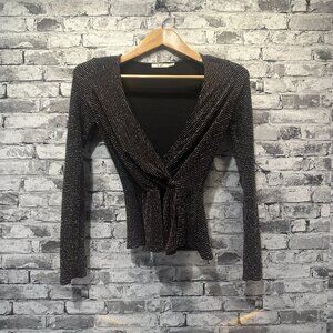 EUC Miami Black Sparkly Long Sleeve V Neck Blouse Size XS