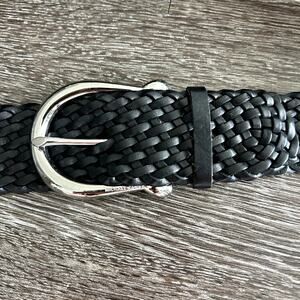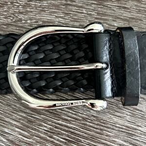 Michael Kors belt, braided leather belt, silver buckle belt, black leather waist belt, Y2K belt, preppy accessories, 2000s style, classic belt, cinch belt, designer belt, everyday belt, adjustable belt, chic accessories, boho belt, capsule wardrobe, leather woven belt, Minimalism, MinimalistRenaissance, quiet luxury, ContemporaryClassics, VintageAthletic, IndieSleaze, classic core, coastal cowgirl, festival, western, southwestern