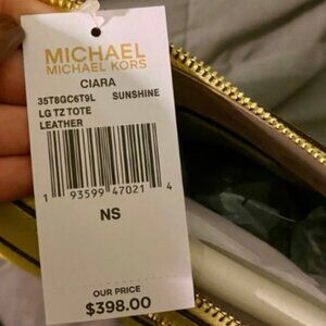 EUC Michael Kors Ciara Large Top Zip Tote Leather Bag Sunshine