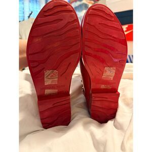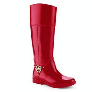EUC Michael Kors Fulton Harness Tall Red Rubber Rain Boots