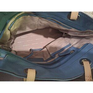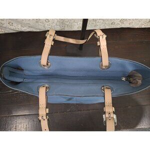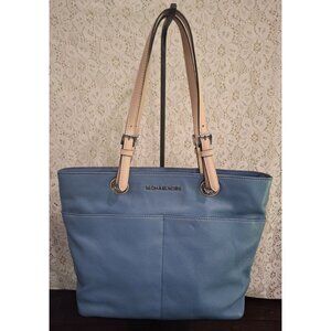 EUC Michael Kors Light Blue Leather Medium Top Zip Pocket Tote