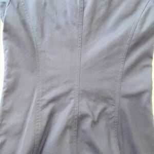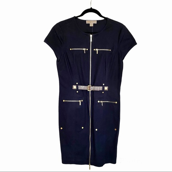 Features clean lines on the back for a great shape look. Full gold zipper on the front, 2 functional square zipper pockets with rivet details with Michael Kors on it at the hips, 2 zipper faux pockets at the chest, a snap on leather belt piece that is adjustable.