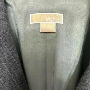 EUC Michael Kors Size 12 gray pinstripe fitted stretch blazer Item# 3C
