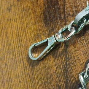 Removable, adjustable leather and silver tone chain strap