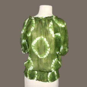 EUC Michael Michael Kors Sheer Tie-Dye Pullover Blouse Short Sleeve Green White