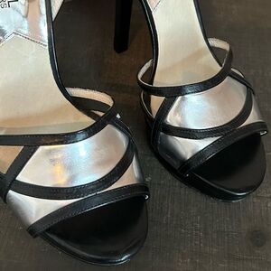 Beautifully crafted black and silver leather, back zipper, 5 1/2" spike heel, 1 1/4" platform