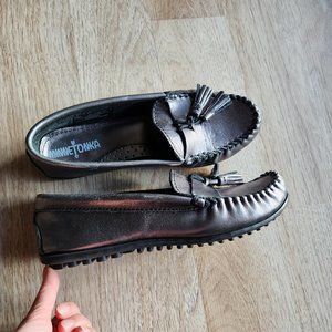 EUC Minnetonka 419T Grace Leather Moccasin Loafer Tassels Gunmetal