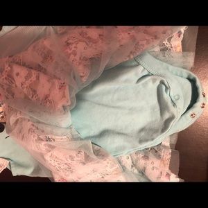 This adorable Minnie Mouse tutu dress is in great condition worn once! It’s a 3 snap onesie with Minnie on top with saying ‘TuTu Cute’. The tutu is a floral design.