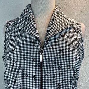 EUC Miss Dorby Womens Zip 🆙 Embroidered Buffalo Plaid Sleeveless Top Size 10P