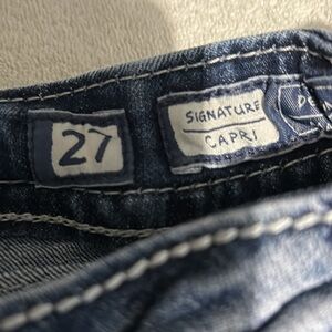 Size 27 miss me jeans capris. Low rise 18 inch insane.. no rips or tears, just doesn’t fit anymore
