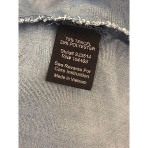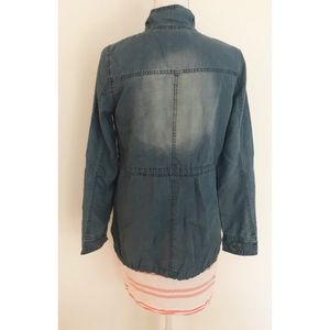 In excellent pre-loved condition, worn once only, light weight perfect for layering Chambray jacket in size small. Jacket color is a little more darker than the model’s sock photos. See mannequin and flat lay photos for actual color & jacket. Hidden adjustable Drawstring waist. Probably can fit a medium too. No flaws. ❌No trades or modeling. Open to offers. Bundle more to save more. Thank you‼️