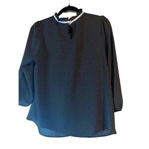 EUC Monteau Black and White Polka Dot Blouse Size XL
