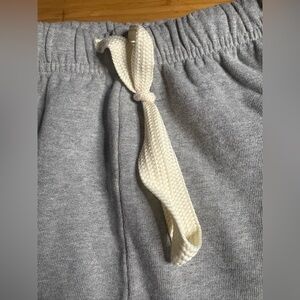 Don't sweat it. Gym shorts from MOVE IT, a 33-piece collection of mix-and-match separates designed in a range of color harmonies. Part of the Moonstone group, these heather grey shorts are made of super soft 100% cotton with a looped drawstring and the capsule’s logo printed down one side. The relaxed shorts feature an elastic waist and a frayed hem. Made in Los Angeles