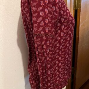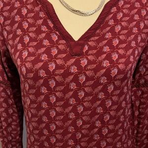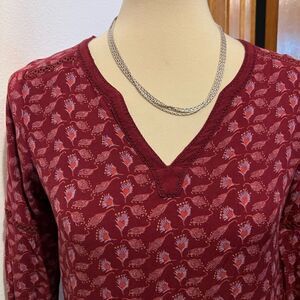 EUC Mountain Khakis Red Print 3/4 Sleeve V-neck Top Size Medium #104