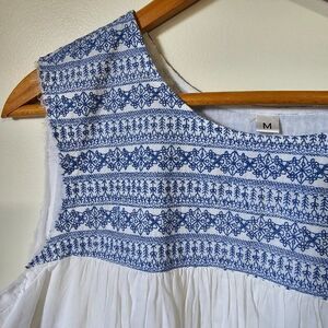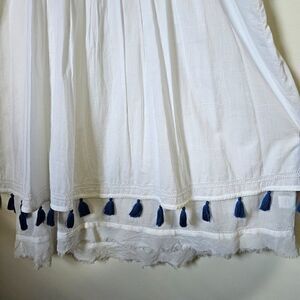 EUC NEVER WORN BOHO EMBROIDERED TASSEL HEM COTTON DRESS SIZE M