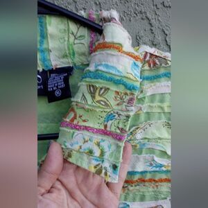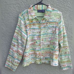 EUC NEW DIRECTION SPORT Green Lightweight Striped Floral Fabric Boho Jacket XL