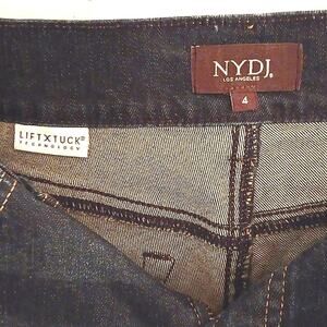 New without tags NYDJ dark blue denim jean shorts. These shorts have no holes, rips, or stains. The waist measures 15" laying down. The inseam measures 3 1/2 inches. It has built loops. These have Lift x Tuck Technology. These come from a smoke free, pet friendly home.