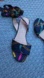 EUC Nanette Lepore Size 7.5 M Navy Blue Scarf Print Ankle Tie Flat Sandals